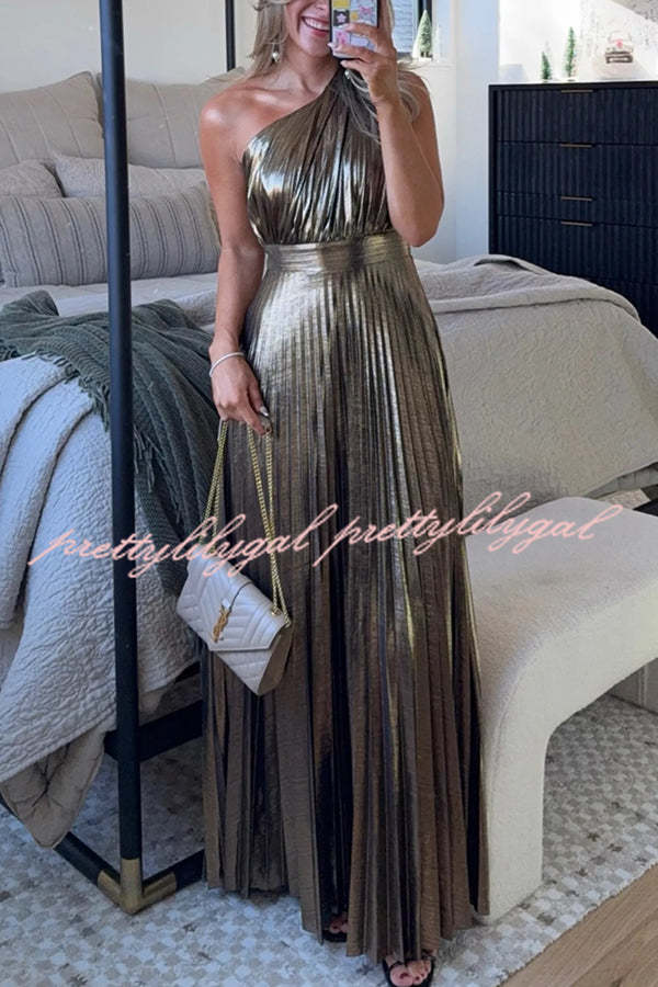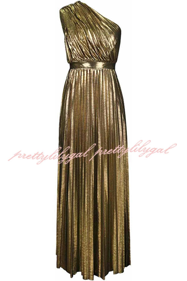 Be My Guest Metallic Fabric Pleated One Shoulder Maxi Dress