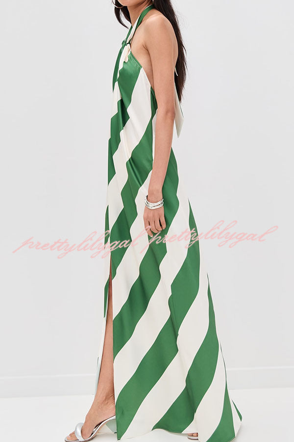 Most Dreamy Stripe Print Halter Tie-up Backless Pocket Loose Maxi Dress