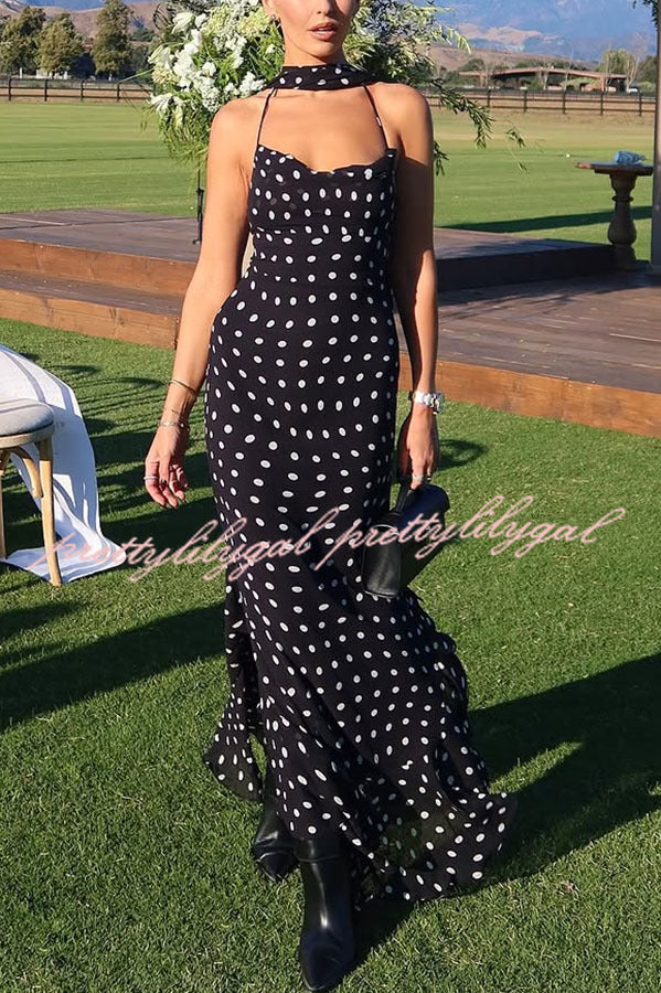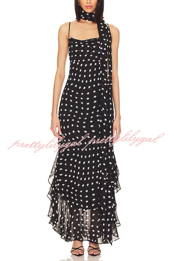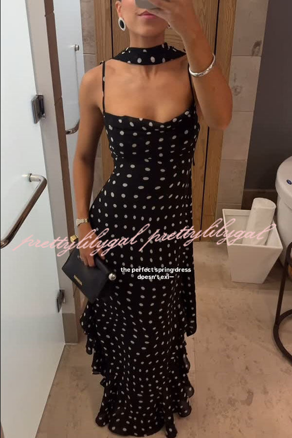 Kaylee Chiffon Polka Dot Ruffled Tiered Hem Scarf Maxi Dress