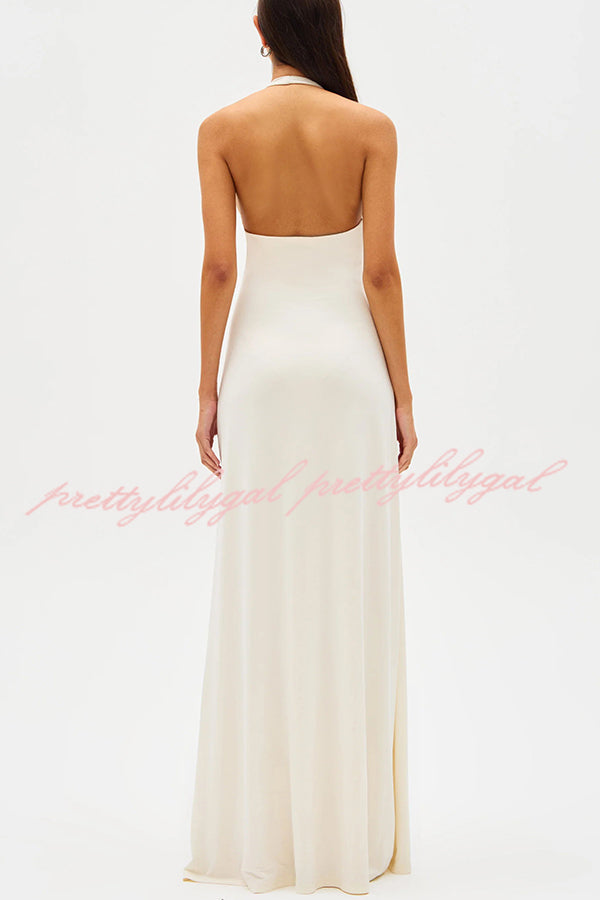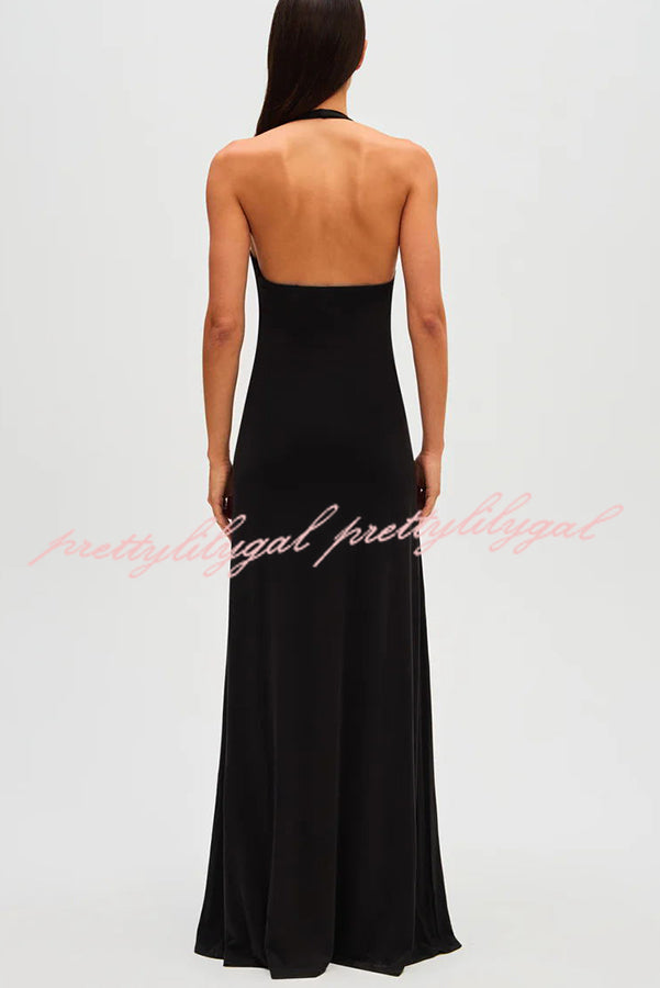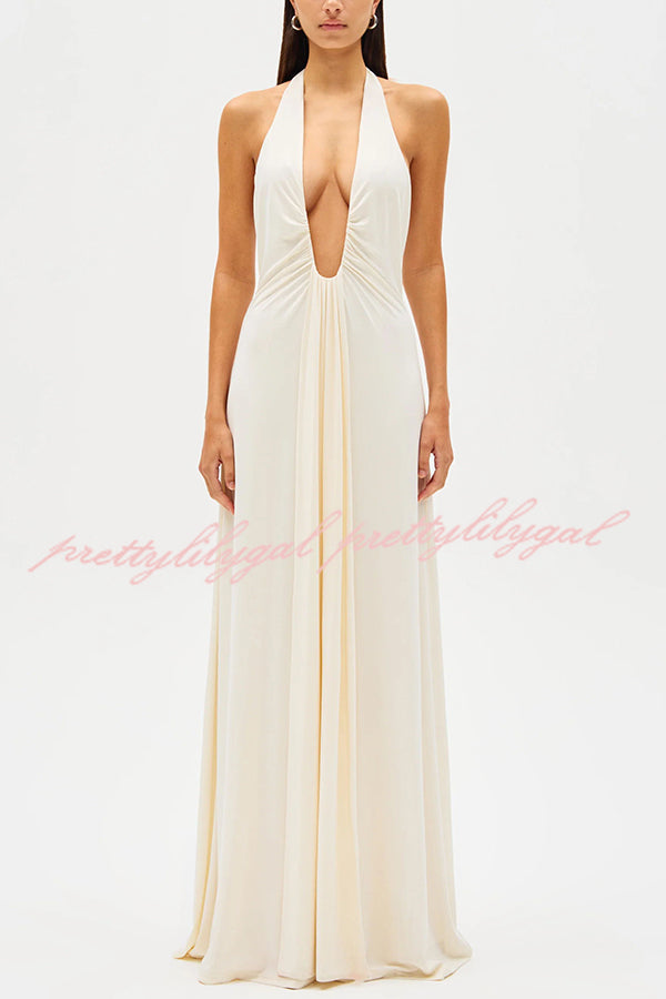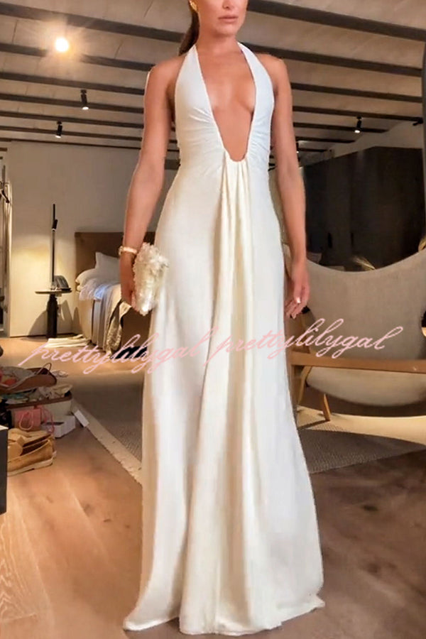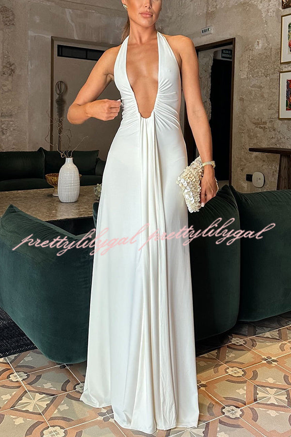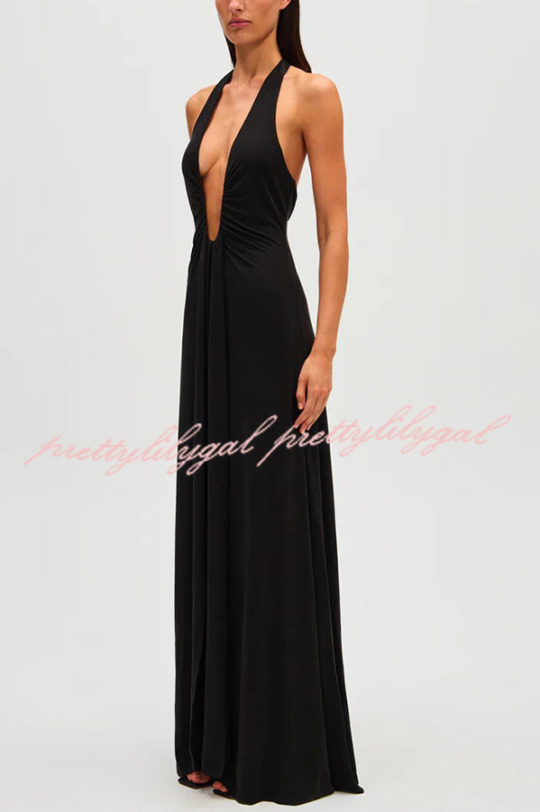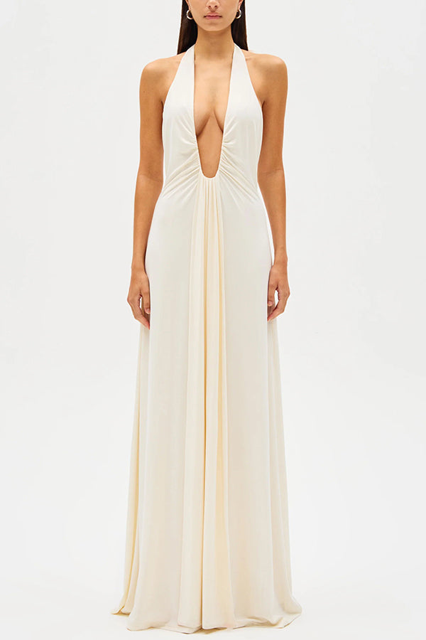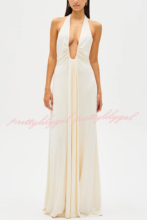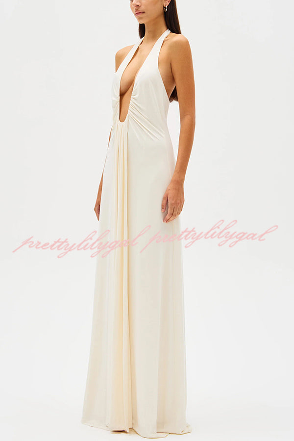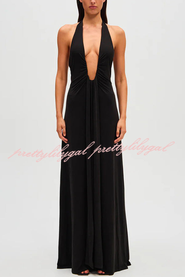 Sexy Silhouette Deep U-neck Halter Waterfall Sash Drape Maxi Dress