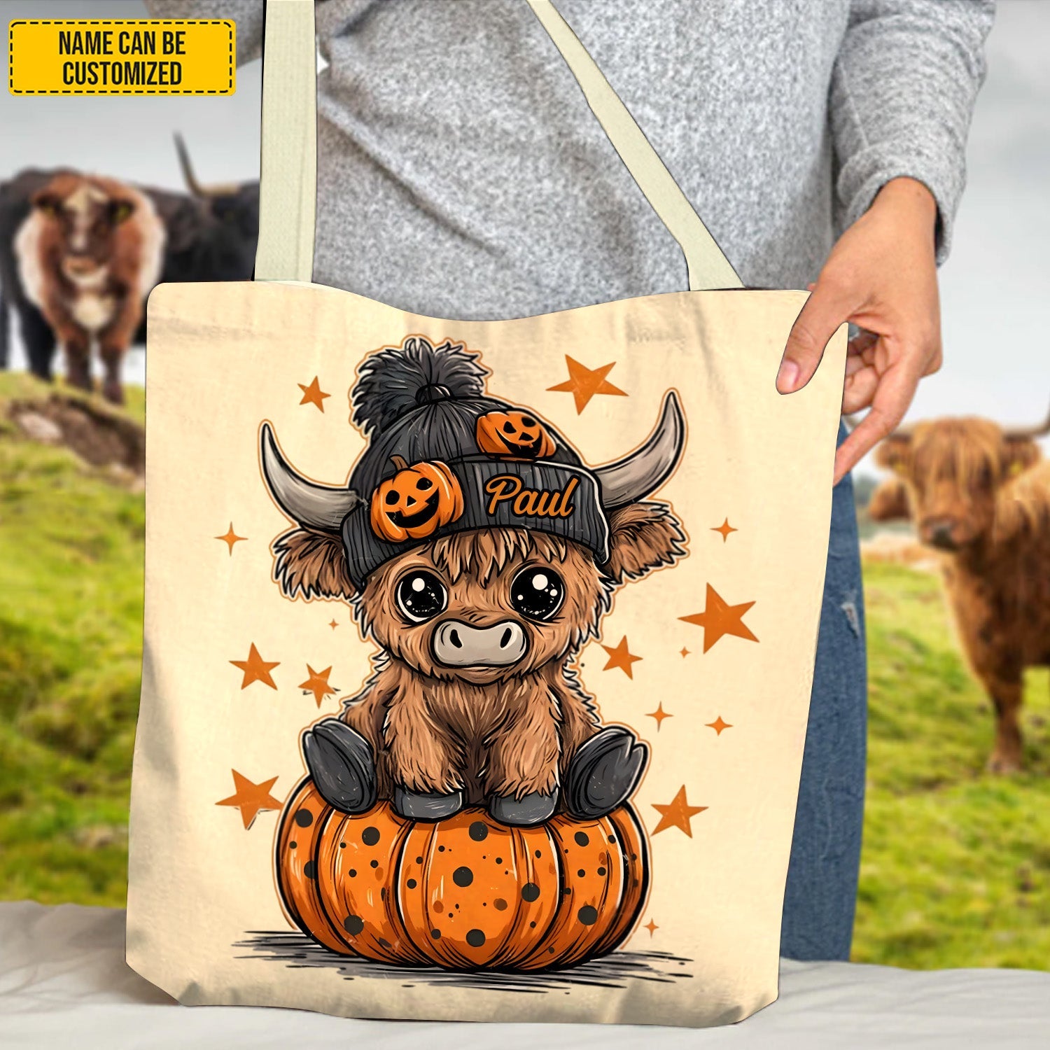 Cute Halloween Cow - Personalized Tote Bag