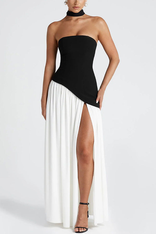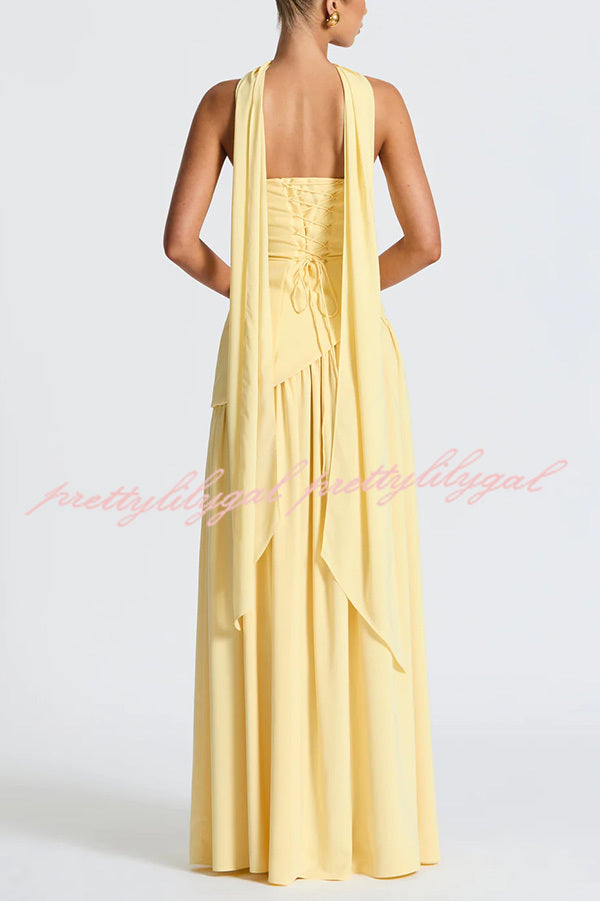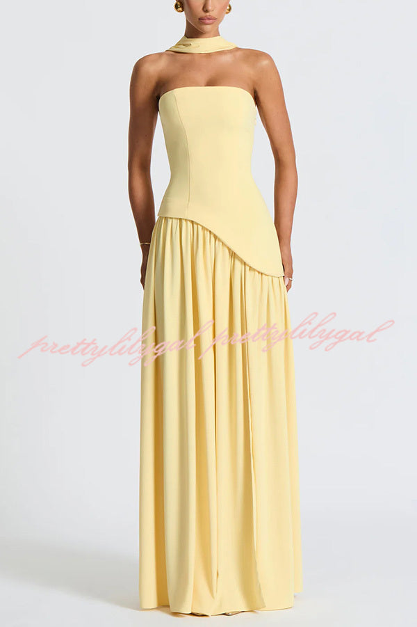 Elegant Off Shopulder Chiffon Pleated Hem Scarf Slit Maxi Dress