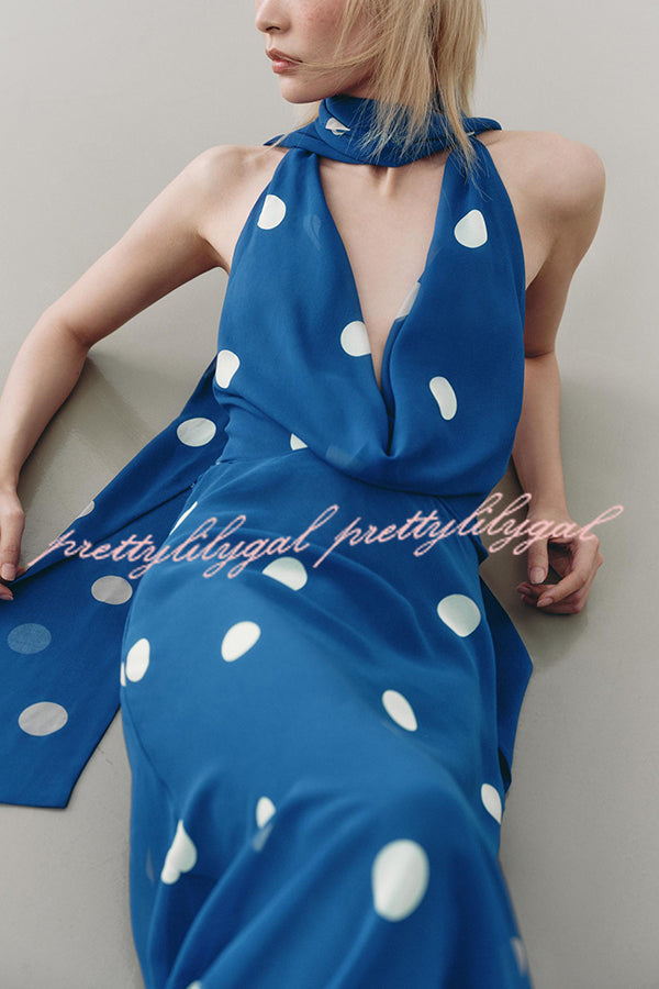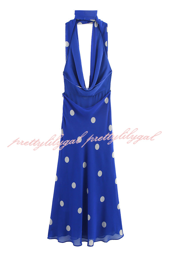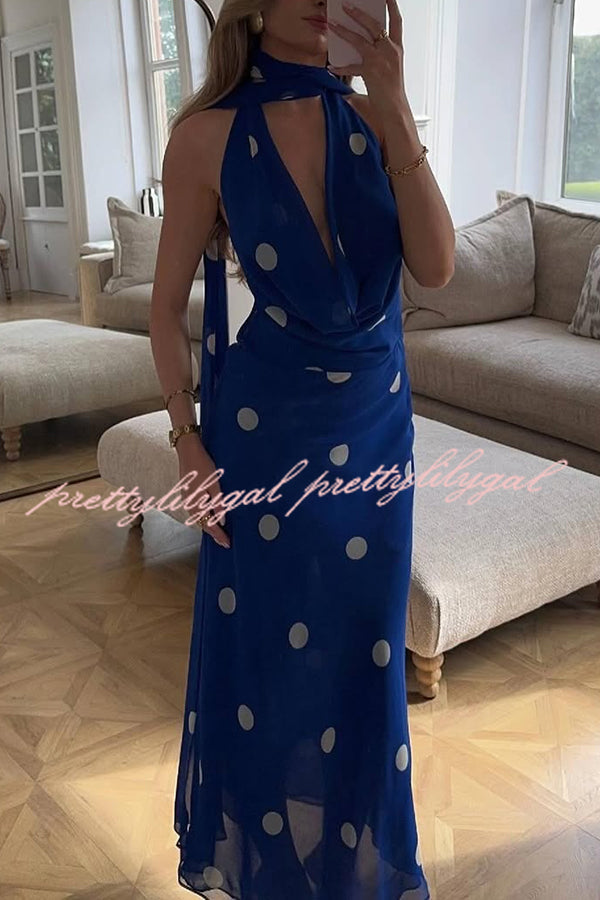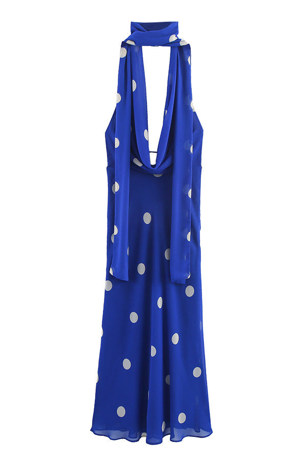 Fashion Polka Dot Print Sexy Halter Neck Backless Maxi Dress