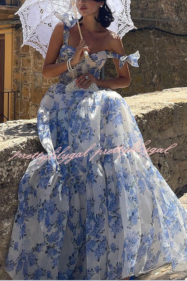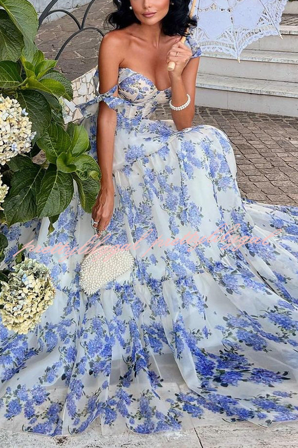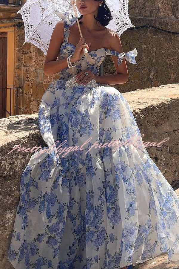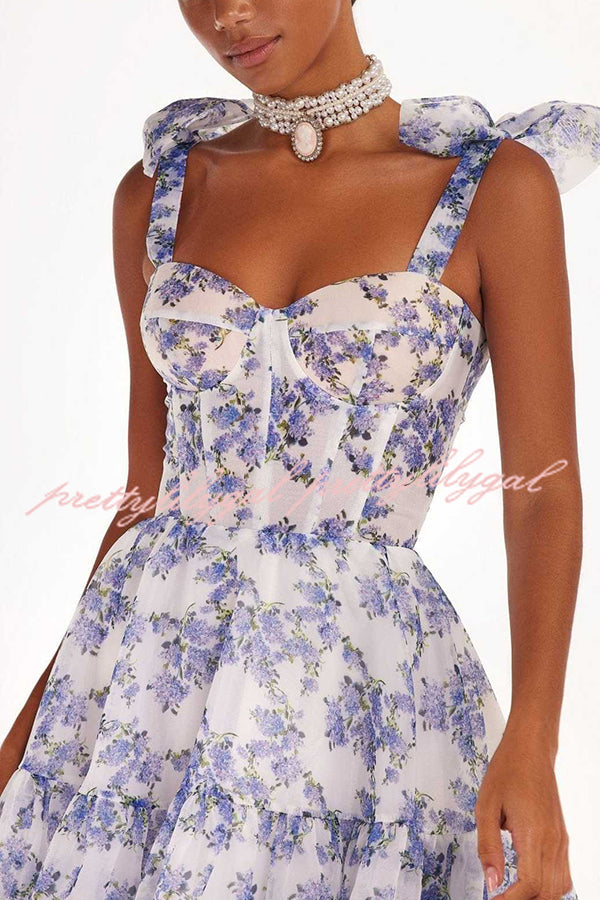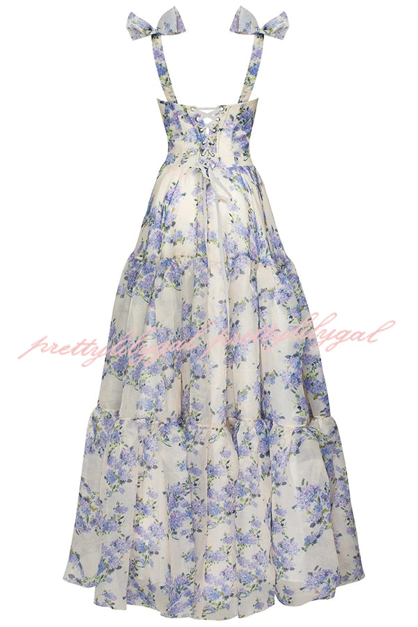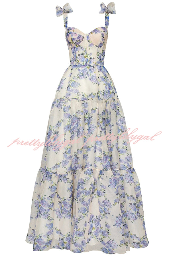 Fairytale Itself Organza Floral Print Tie Strap Maxi Dress