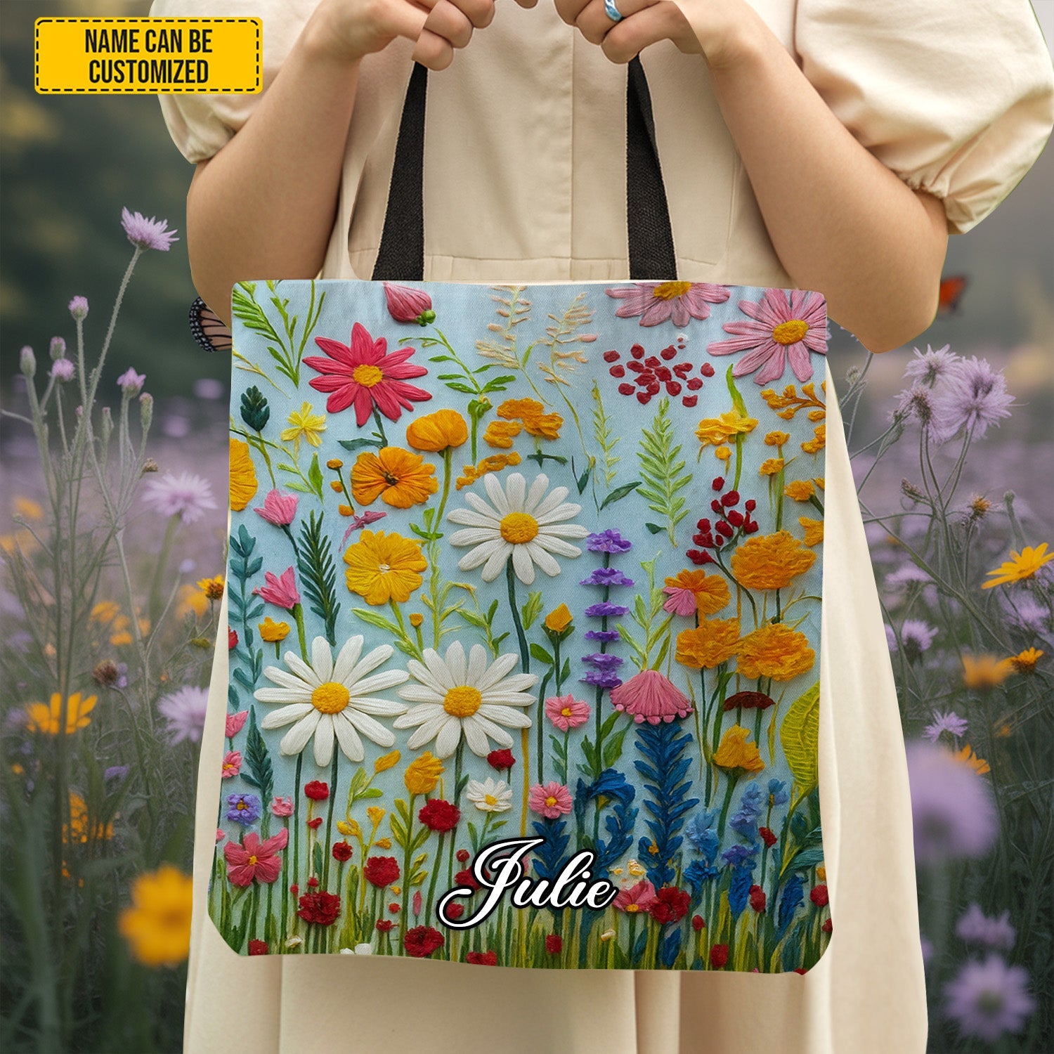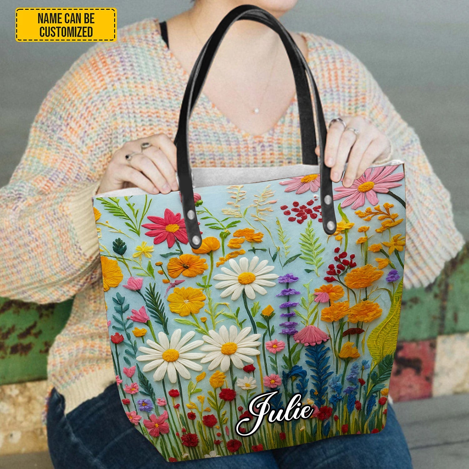 Flower Pattern - Personalized Tote Bag