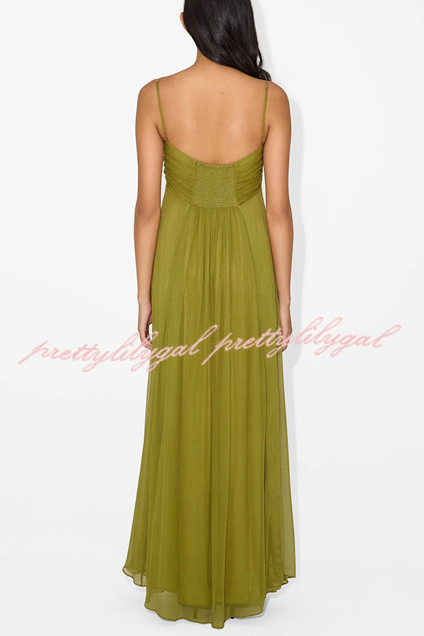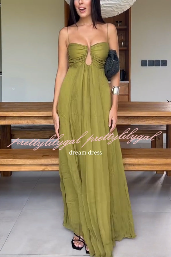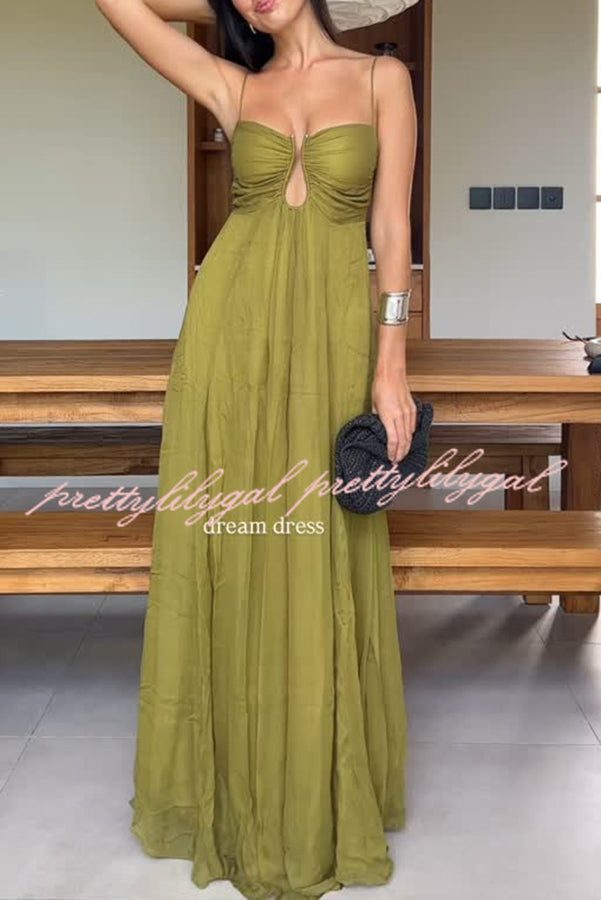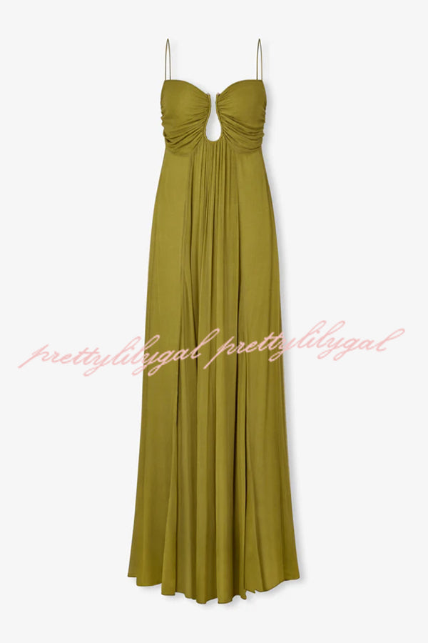 Soft and Elegant Metal Hollow Design Back Smocked A-line Slip Maxi Dress