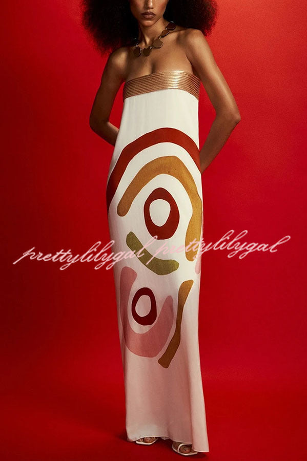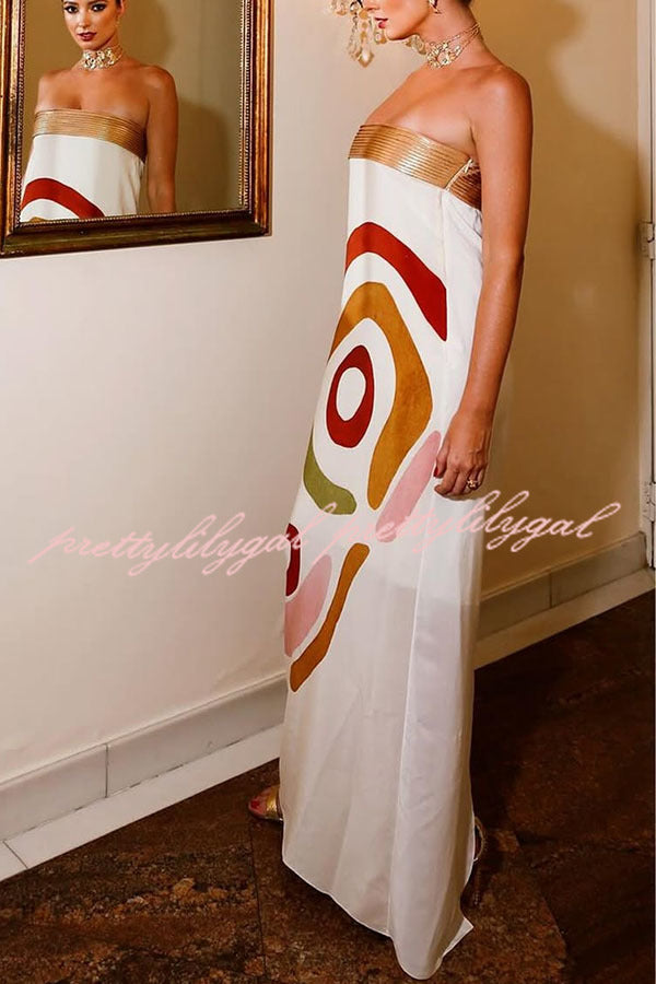 Darlin' Unique Print Pleated Metal Collar Strapless Maxi Dress