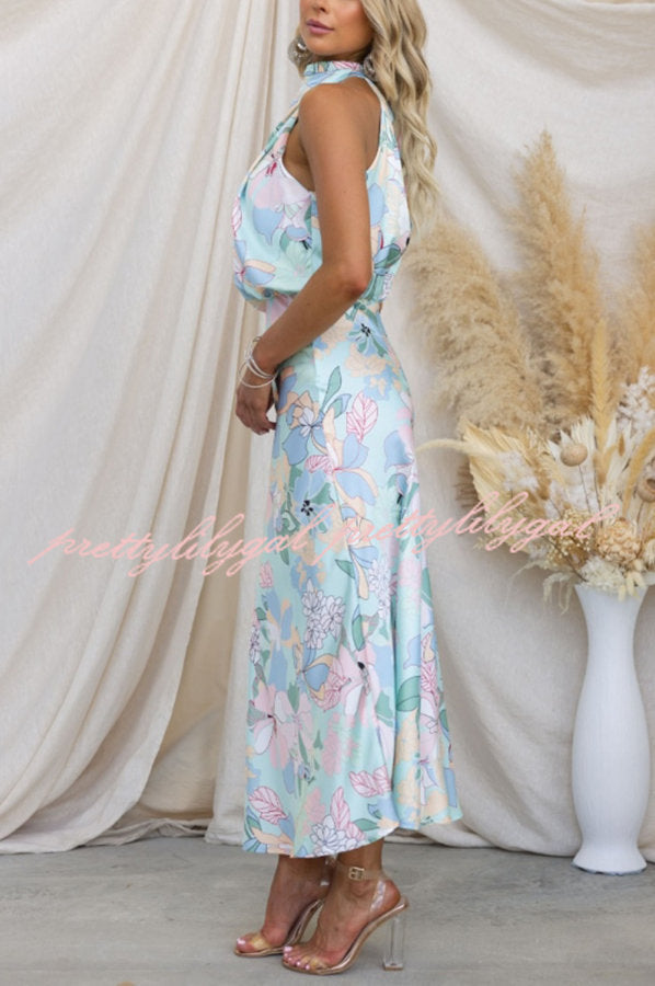 Love In The Garden Floral Halter Neck Elastic Waist Maxi Dress