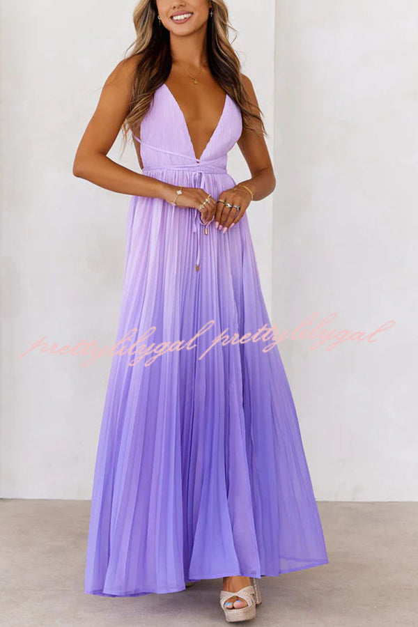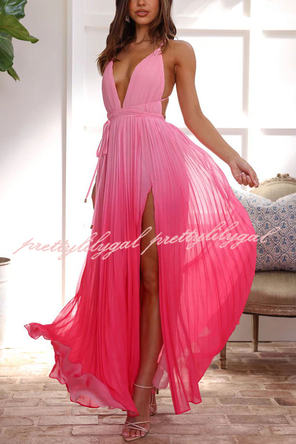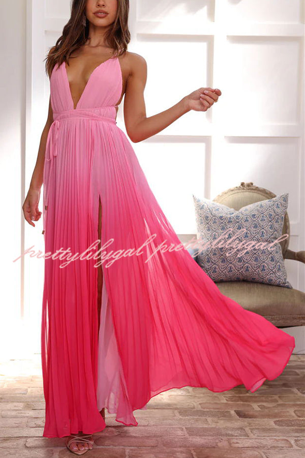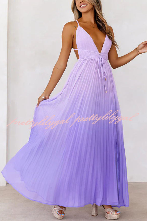 Love Letter To You Pleated Gradient Print Back Tie-up Slit Maxi Dress