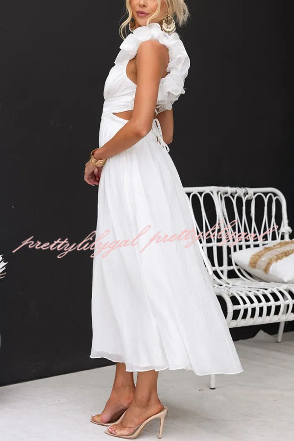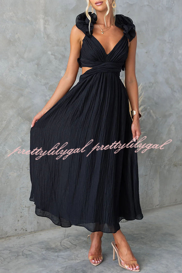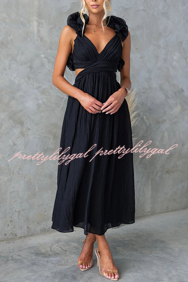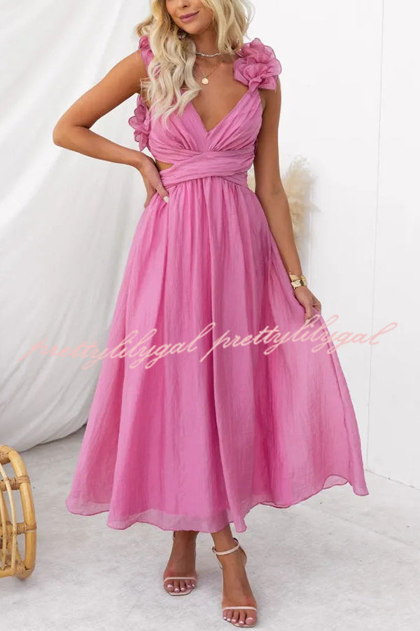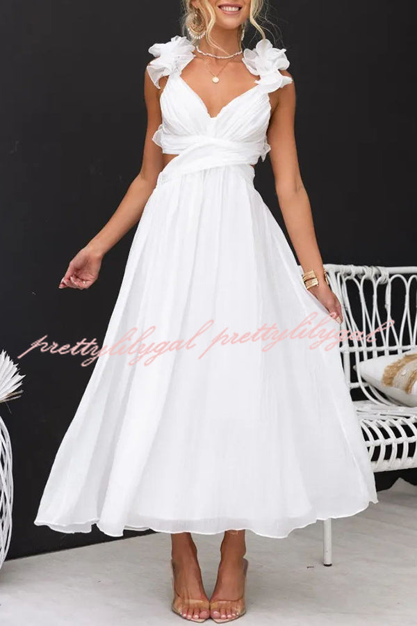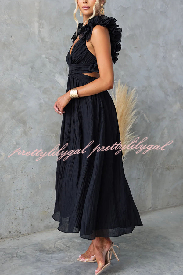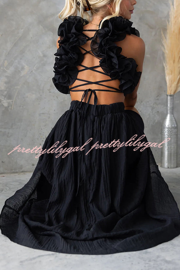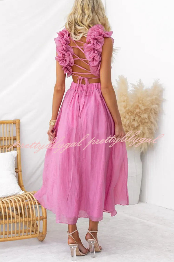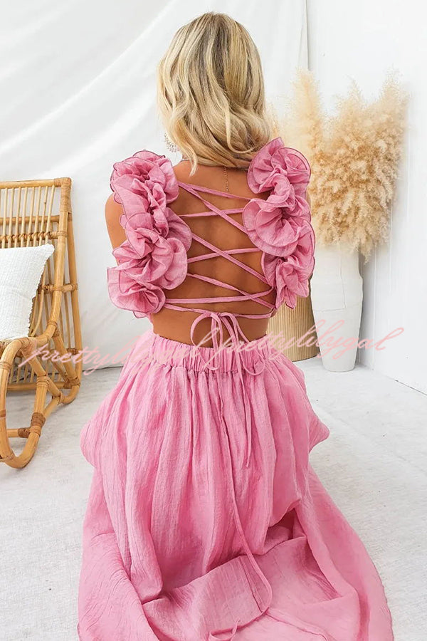 Luxe Lady Floral Ruffle Detail Back Lace-up Elastic Waist Maxi Dress