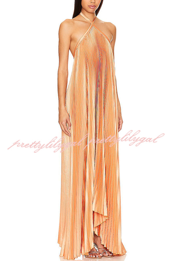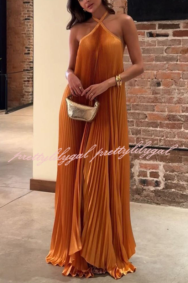 Luxurious Atmosphere Satin Halter Neck Backless A-line Gown Maxi Dress