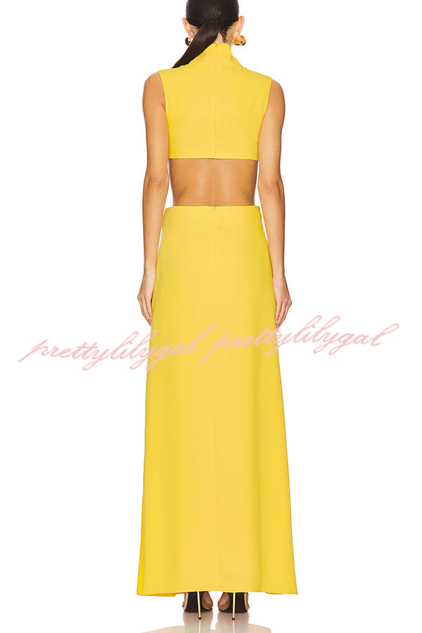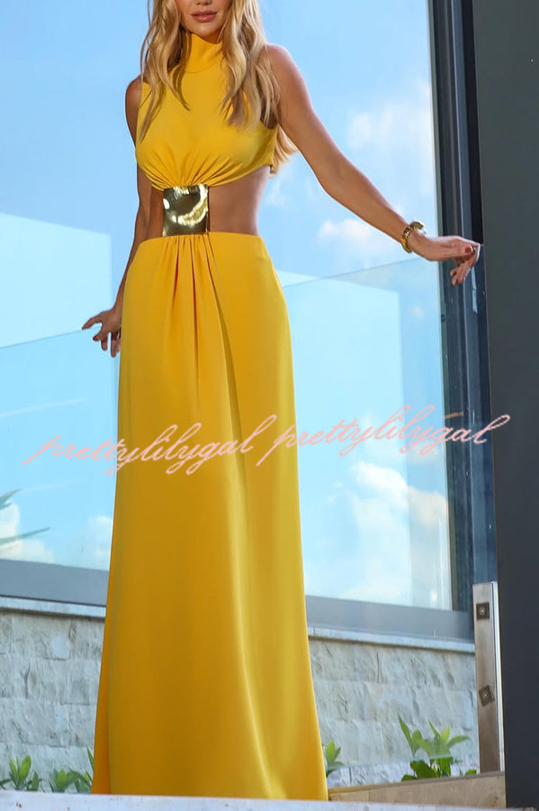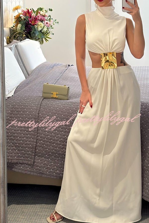 Avery High Neck Metal Decoration Cutout Waist Maxi Dress