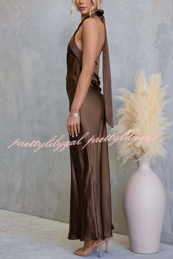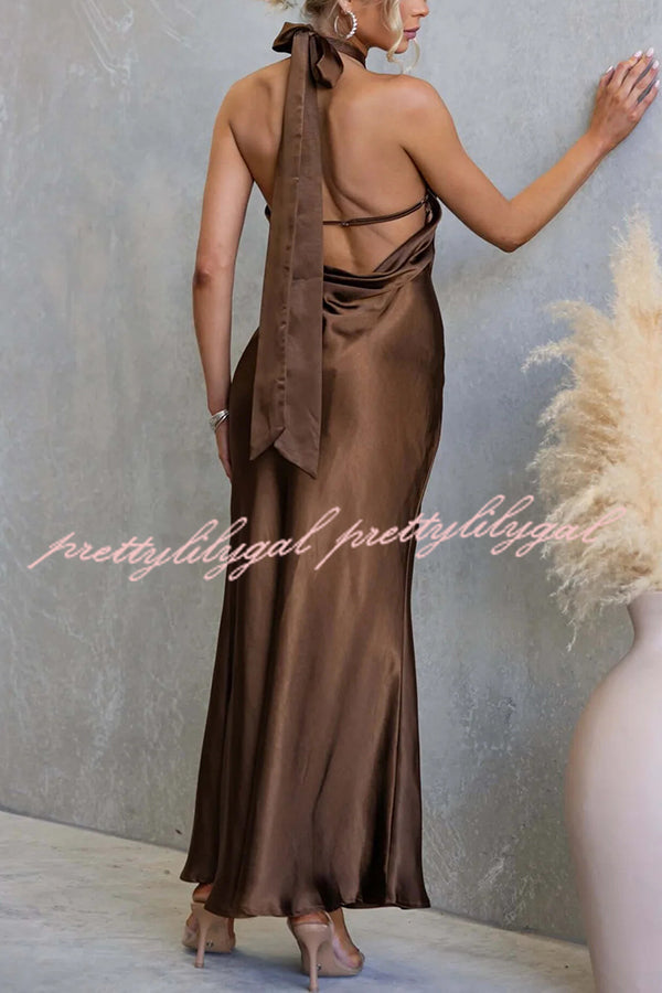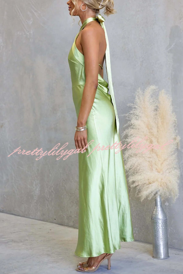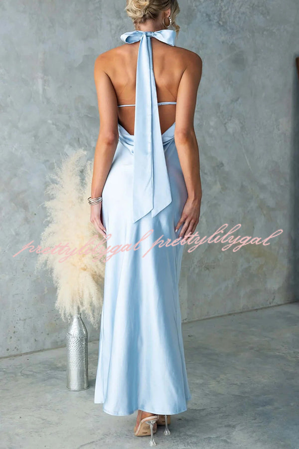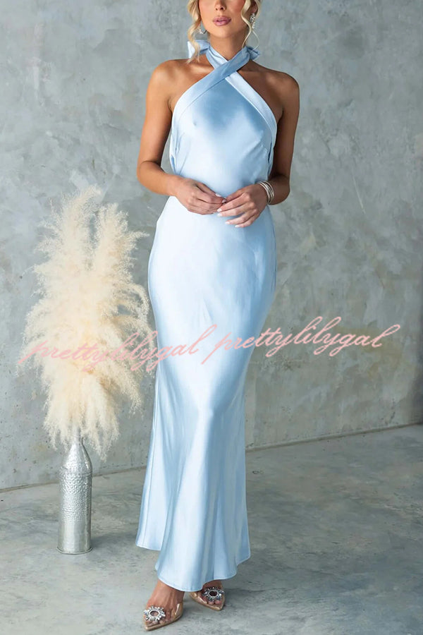 Satin Fashion Halter Backless Slim Elegant Maxi Dress