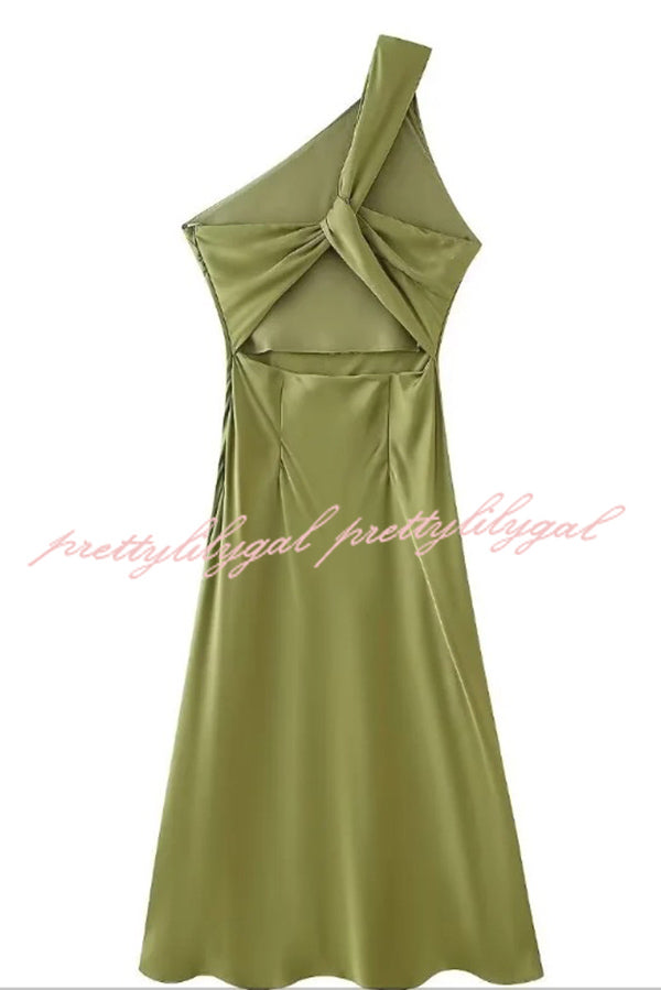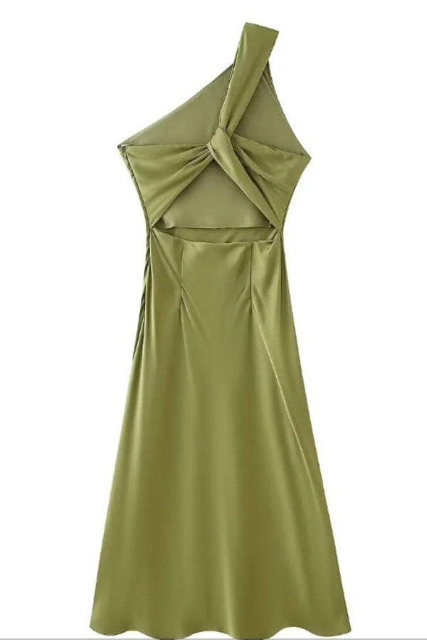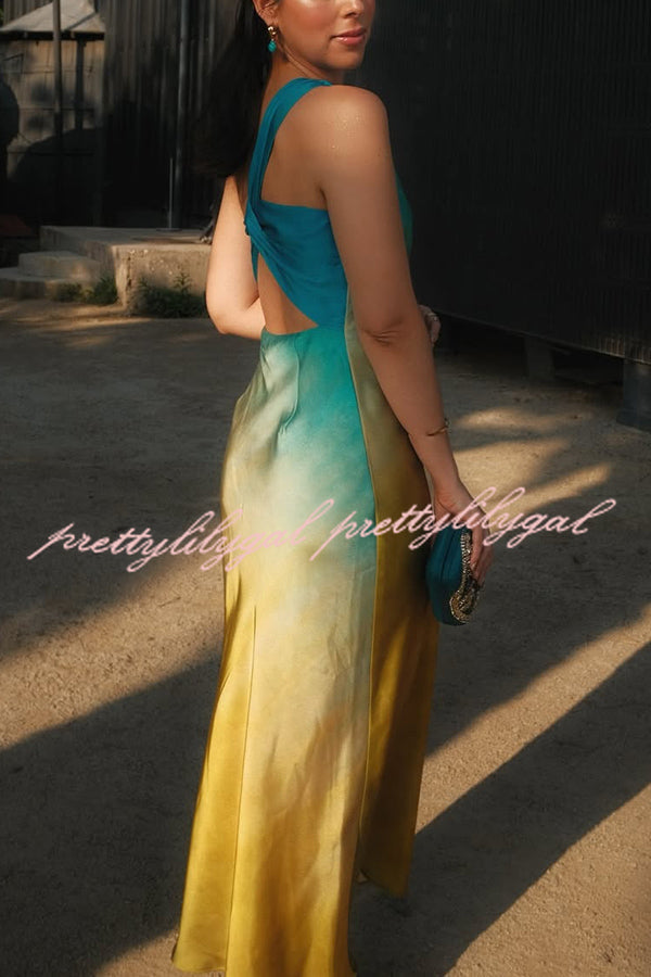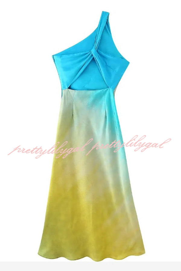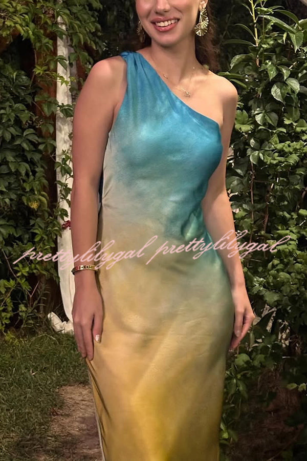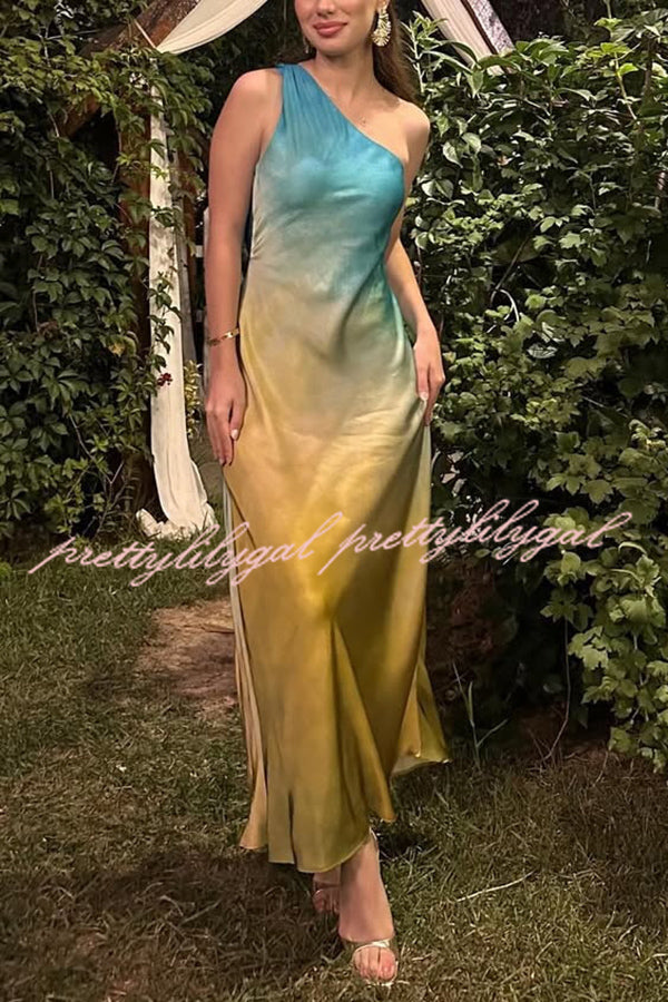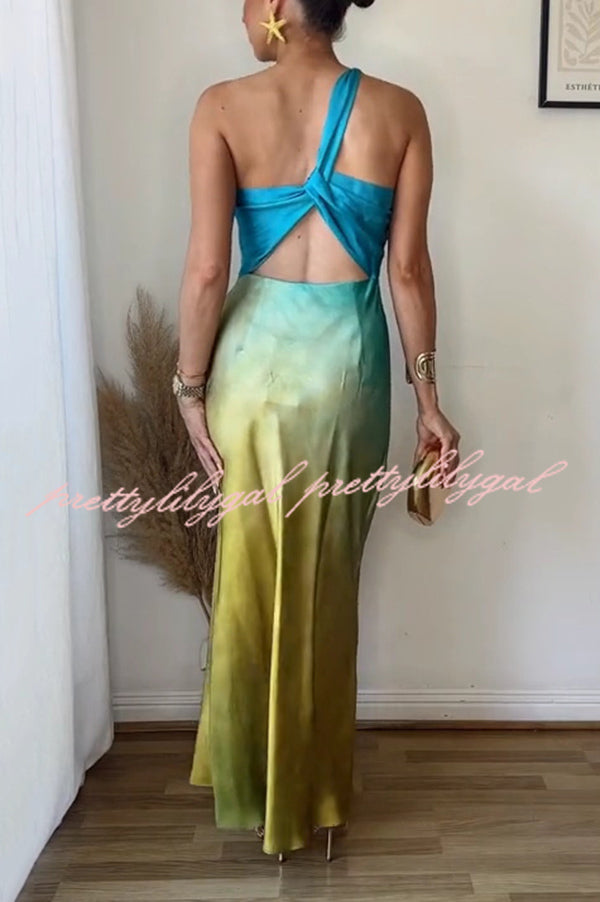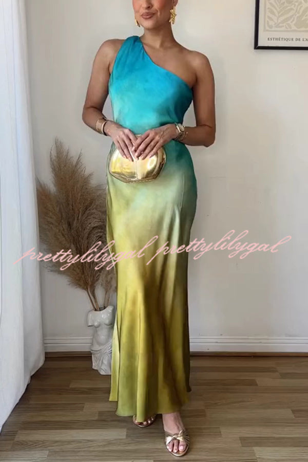 Satin Ombre One Shoulder Backless Fitted Maxi Dress