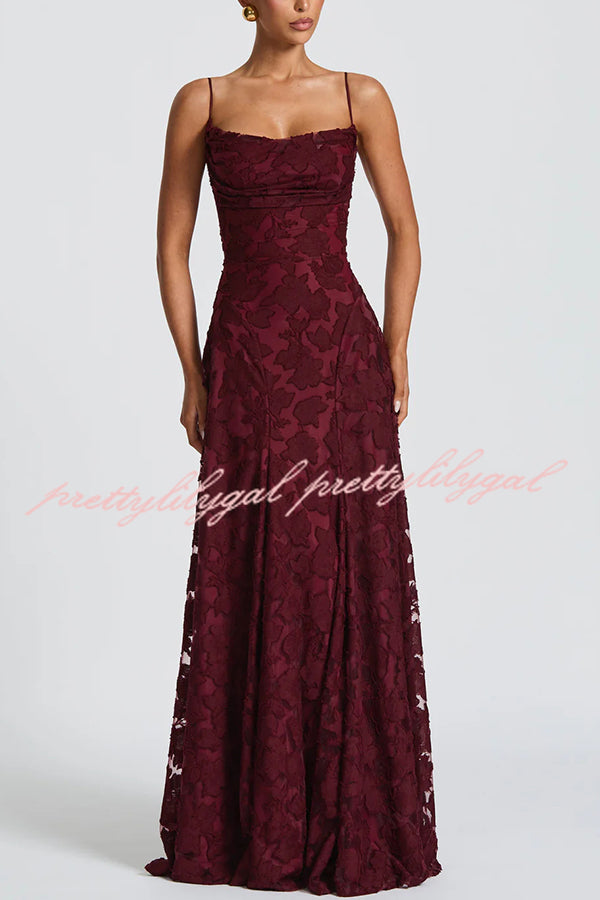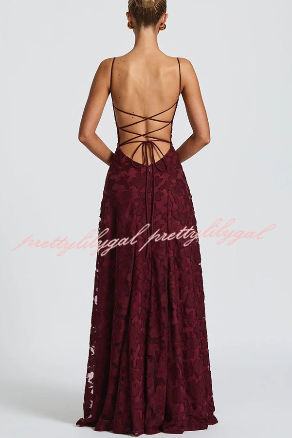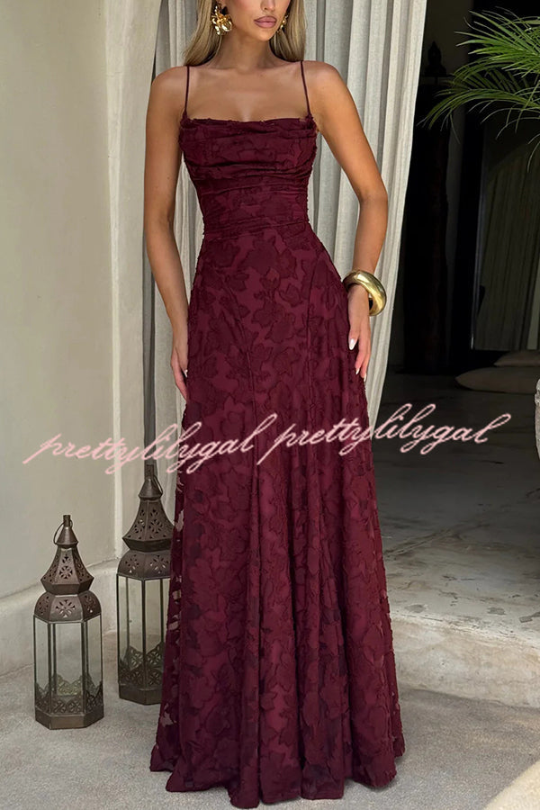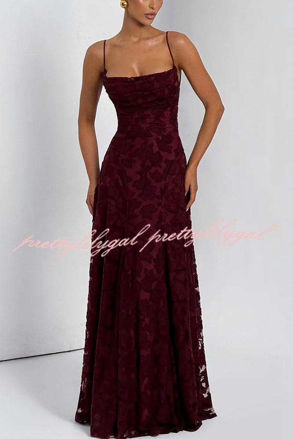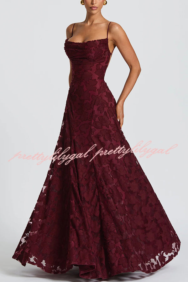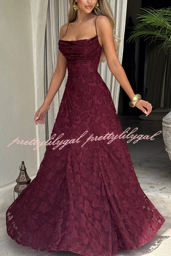 Francis Floral Burnout Jersey Fabric Cowl Neck Back Lace-up Maxi Dress