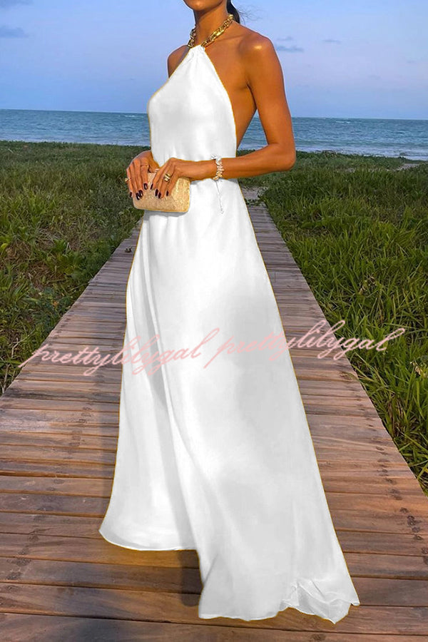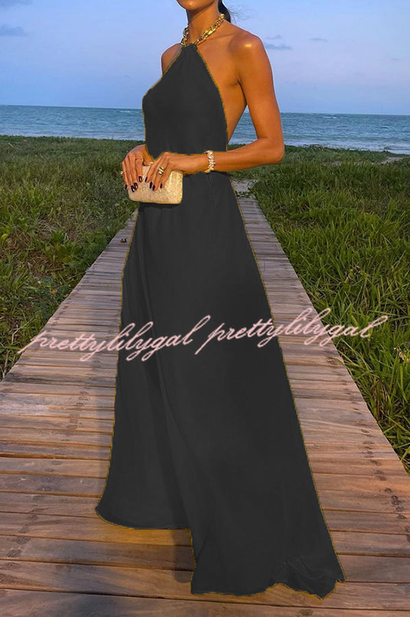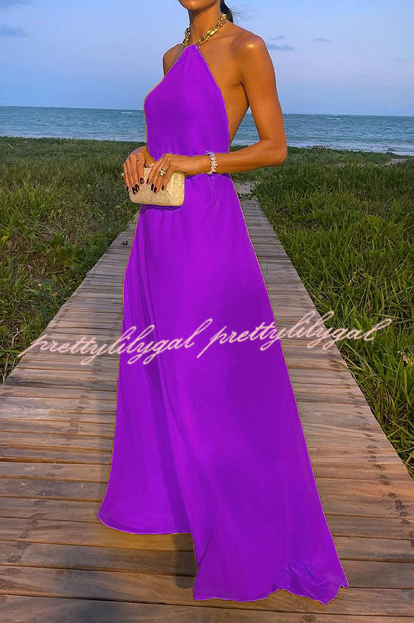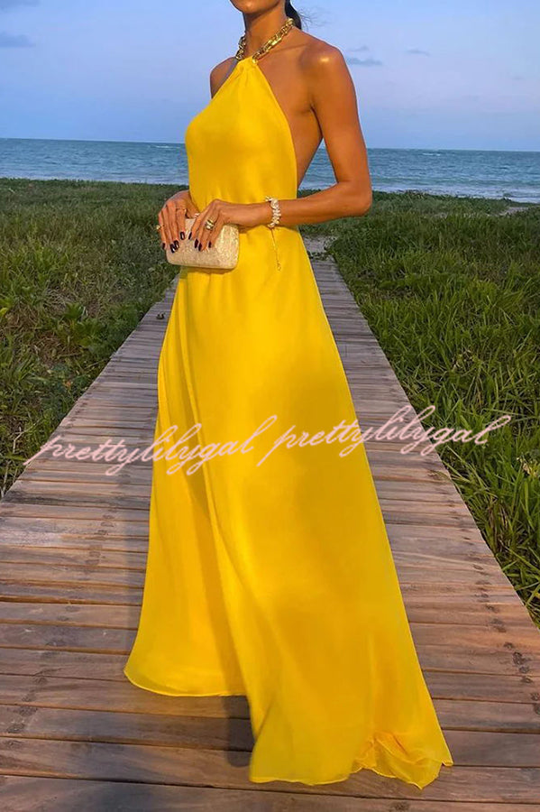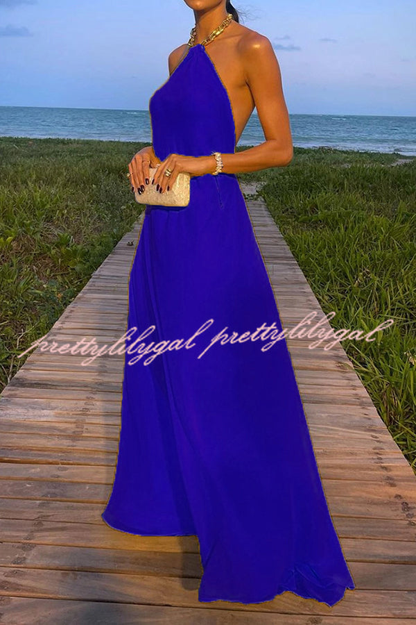 Sunny in Santorini Metal Chain Halter Backless A-line Vacation Maxi Dress