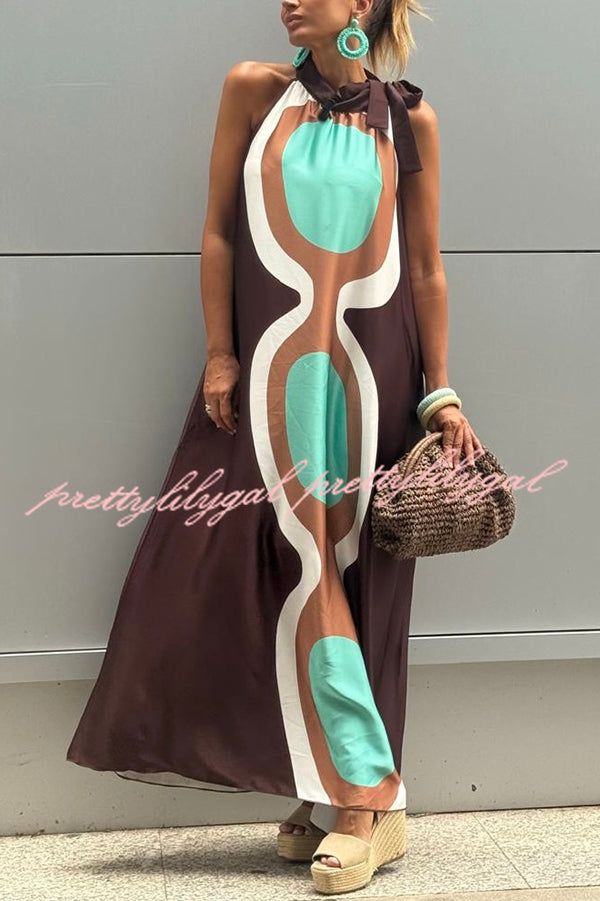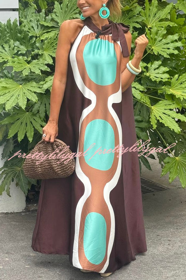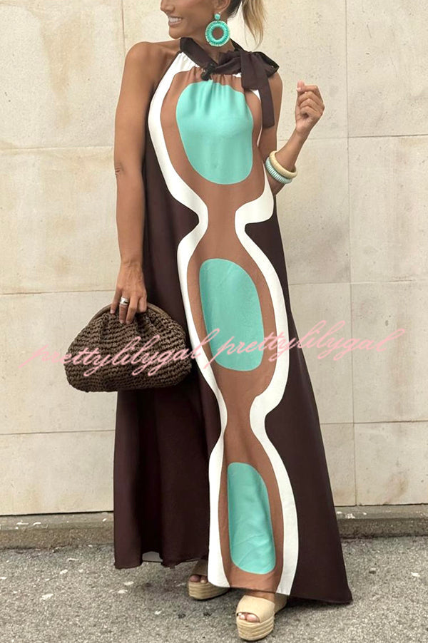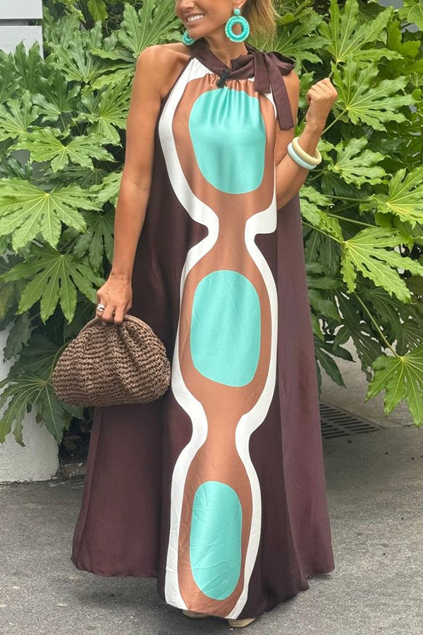 Unique Print Sleeveless Halter Neck Loose Holiday Maxi Dress