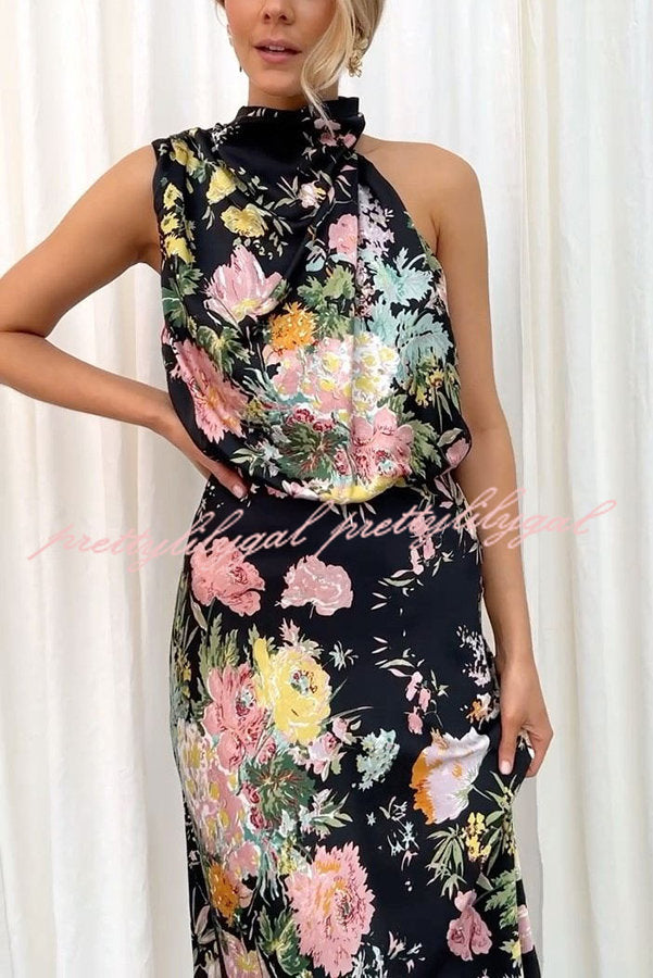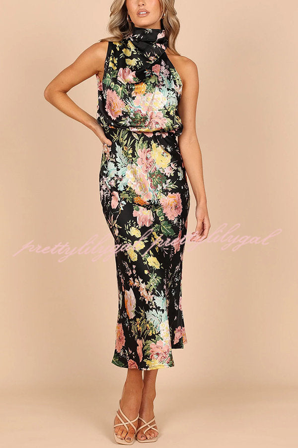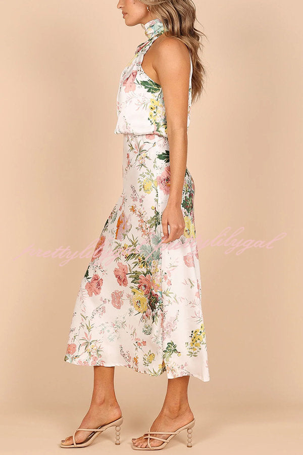 Wine Country Dates Floral Halter Neck Elastic Waist Maxi Dress