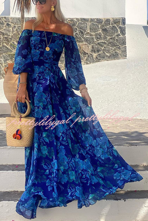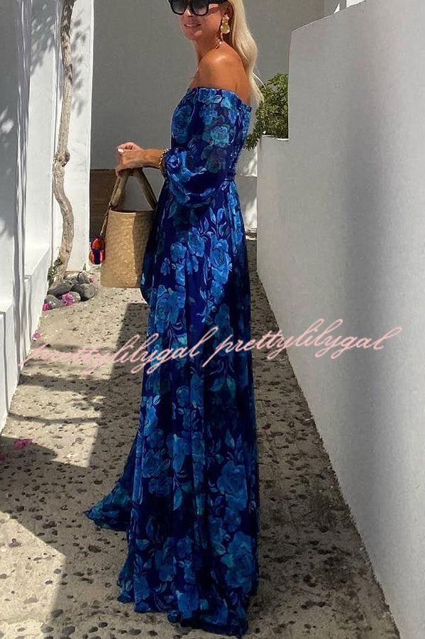 With Love Floral Off Shoulder Back Smocked Vacation Maxi Dress